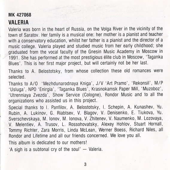 При создании этого альбомы приняло большое количество человек. Если вы интересуетесь творчесвом группы Валерия, то на нашем сайте вы сможете найти больше информации о ней. Купить их CD диски очень просто.