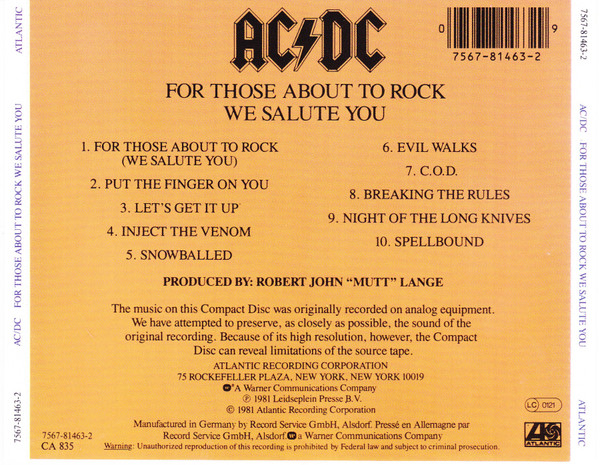 Купить CD диск AC/DC - For Those About To Rock We Salute You в Москве с доставкой по России.