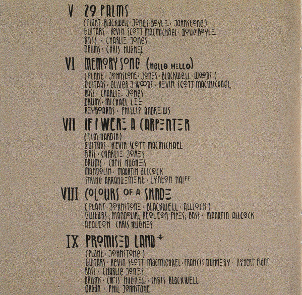 При создании этого альбомы приняло большое количество человек. Если вы интересуетесь творчесвом группы Robert Plant, то на нашем сайте вы сможете найти больше информации о ней. Купить их CD диски очень просто.