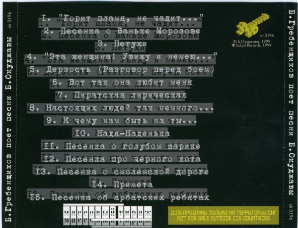 Борис Гребенщиков - Борис Гребенщиков Поет Песни Булата Окуджавы * Иностранный агент ( Russia / 1999 / NM- / NM- )
