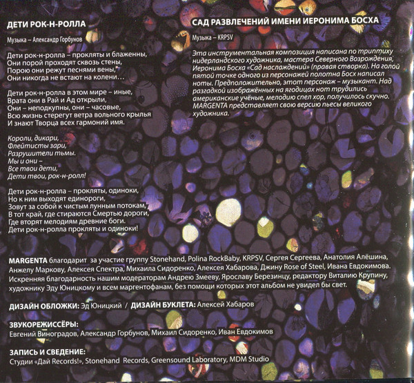 При создании этого альбомы приняло большое количество человек. Если вы интересуетесь творчесвом группы Margenta, то на нашем сайте вы сможете найти больше информации о ней. Купить их CD диски очень просто.