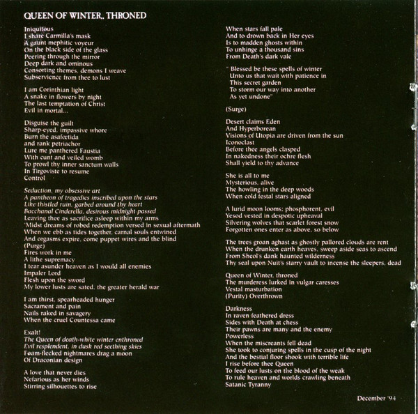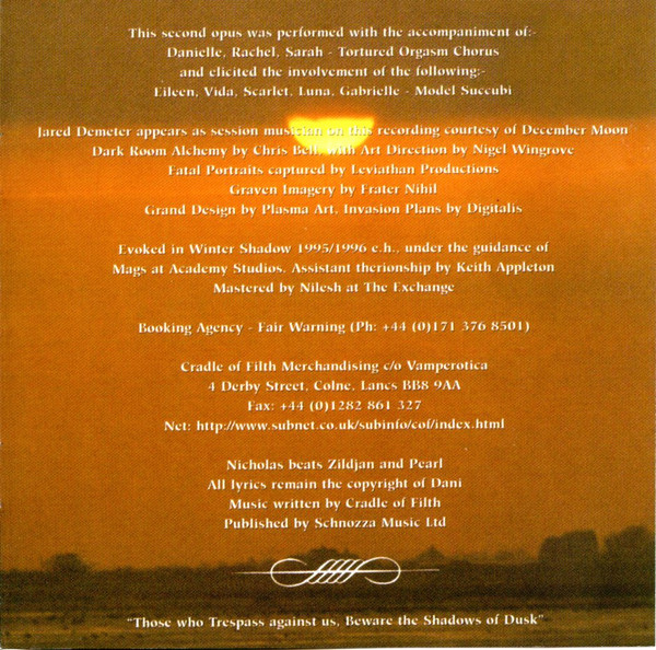 При создании этого альбомы приняло большое количество человек. Если вы интересуетесь творчесвом группы Cradle Of Filth, то на нашем сайте вы сможете найти больше информации о ней. Купить их CD диски очень просто.