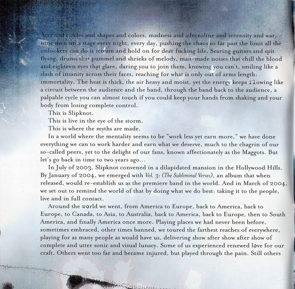 При создании этого альбомы приняло большое количество человек. Если вы интересуетесь творчесвом группы Slipknot, то на нашем сайте вы сможете найти больше информации о ней. Купить их CD диски очень просто.