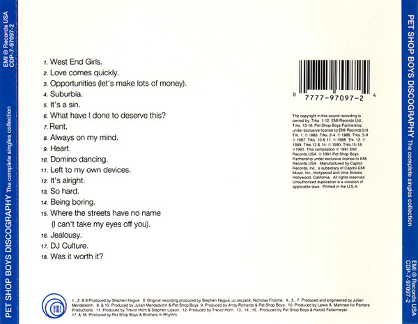 Купить CD диск Pet Shop Boys - Discography (The Complete Singles Collection) в Москве с доставкой по России.
