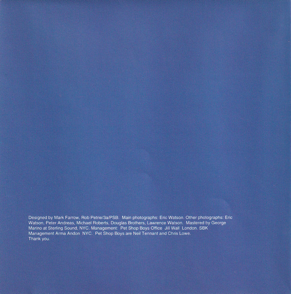 При создании этого альбомы приняло большое количество человек. Если вы интересуетесь творчесвом группы Pet Shop Boys, то на нашем сайте вы сможете найти больше информации о ней. Купить их CD диски очень просто.