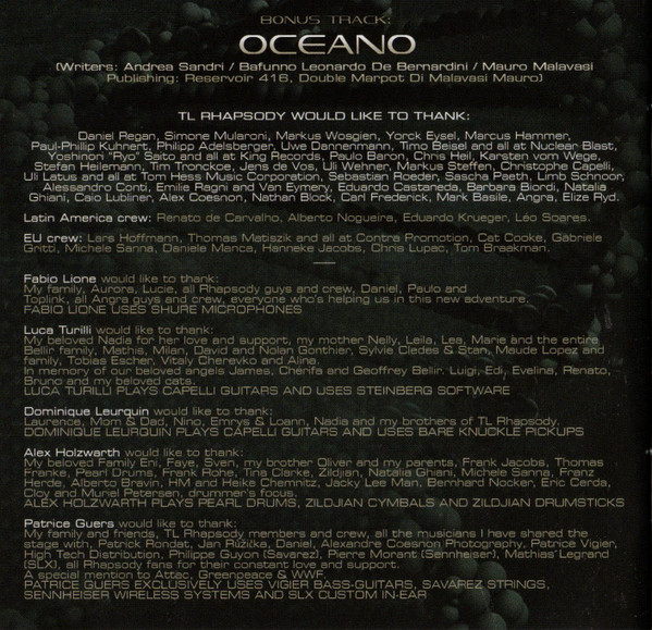 При создании этого альбомы приняло большое количество человек. Если вы интересуетесь творчесвом группы Turilli / Lione Rhapsody, то на нашем сайте вы сможете найти больше информации о ней. Купить их CD диски очень просто.