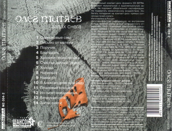 Купить CD диск Олег Митяев - Запах Снега в Москве с доставкой по России.