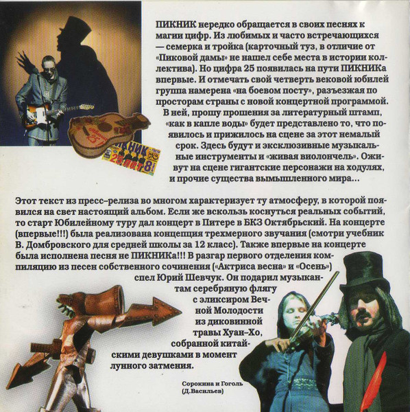 При создании этого альбомы приняло большое количество человек. Если вы интересуетесь творчесвом группы Пикник, то на нашем сайте вы сможете найти больше информации о ней. Купить их CD диски очень просто.