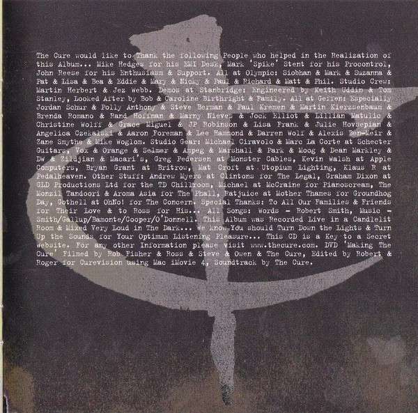 При создании этого альбомы приняло большое количество человек. Если вы интересуетесь творчесвом группы The Cure, то на нашем сайте вы сможете найти больше информации о ней. Купить их CD диски очень просто.