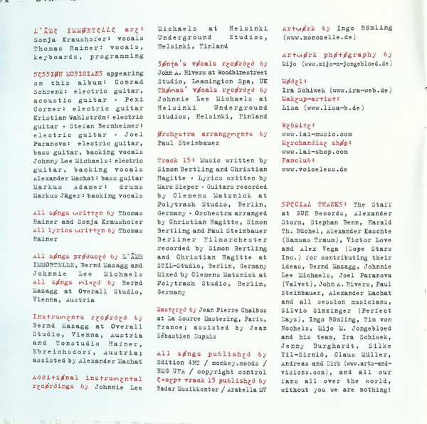 При создании этого альбомы приняло большое количество человек. Если вы интересуетесь творчесвом группы L'^Ame Immortelle, то на нашем сайте вы сможете найти больше информации о ней. Купить их CD диски очень просто.