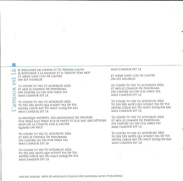 При создании этого альбомы приняло большое количество человек. Если вы интересуетесь творчесвом группы V'eronique Sanson, то на нашем сайте вы сможете найти больше информации о ней. Купить их CD диски очень просто.