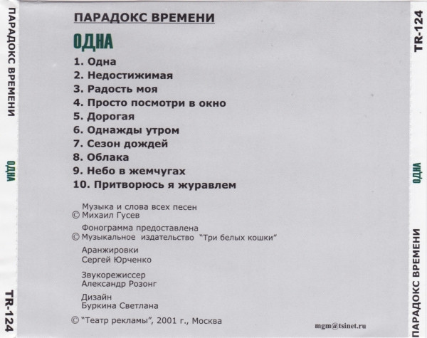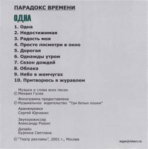 Парадокс Времени - Одна ( Russia / 2001 / NM / NM )