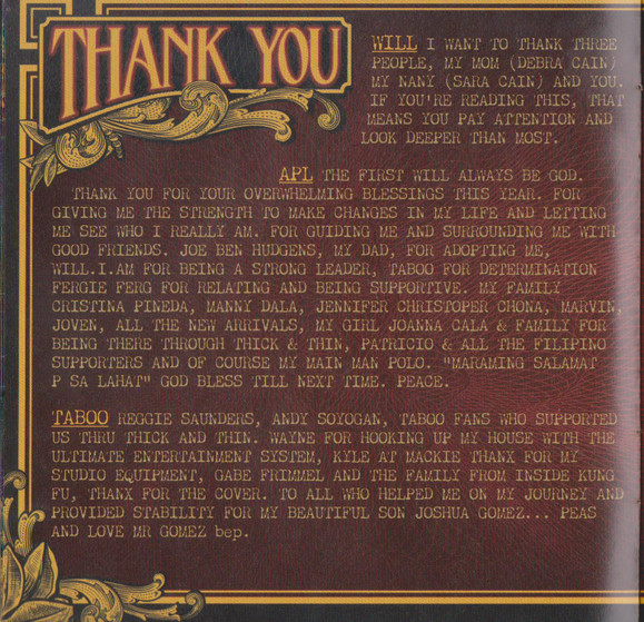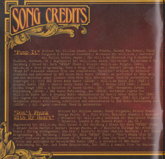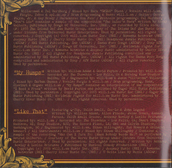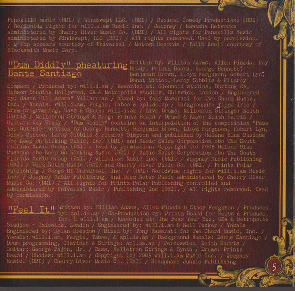 При создании этого альбомы приняло большое количество человек. Если вы интересуетесь творчесвом группы Black Eyed Peas, то на нашем сайте вы сможете найти больше информации о ней. Купить их CD диски очень просто.