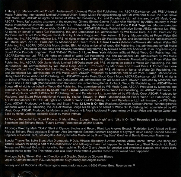 При создании этого альбомы приняло большое количество человек. Если вы интересуетесь творчесвом группы Madonna, то на нашем сайте вы сможете найти больше информации о ней. Купить их CD диски очень просто.