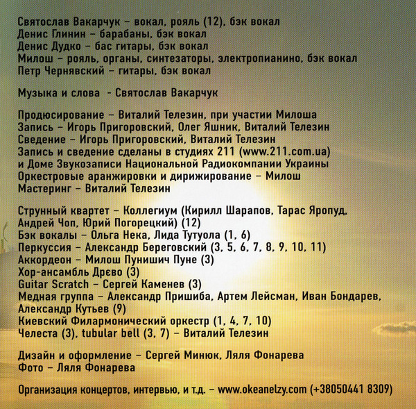 При создании этого альбомы приняло большое количество человек. Если вы интересуетесь творчесвом группы Океан Ельзи, то на нашем сайте вы сможете найти больше информации о ней. Купить их CD диски очень просто.