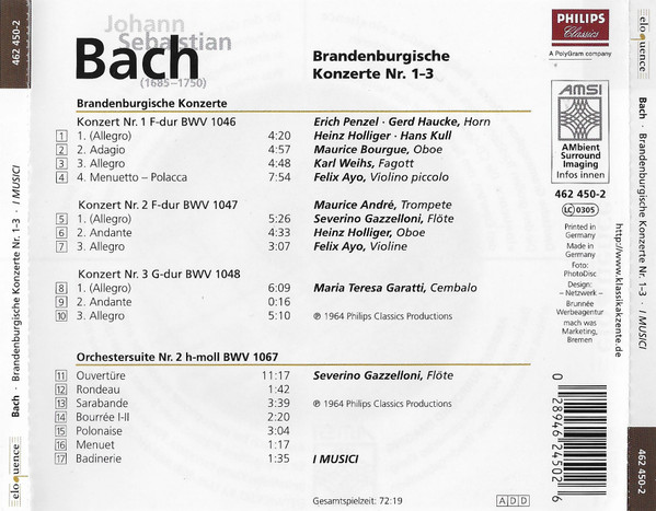 Купить CD диск Johann Sebastian Bach - Brandenburgische Konzerte Nr. 1-3 в Москве с доставкой по России.
