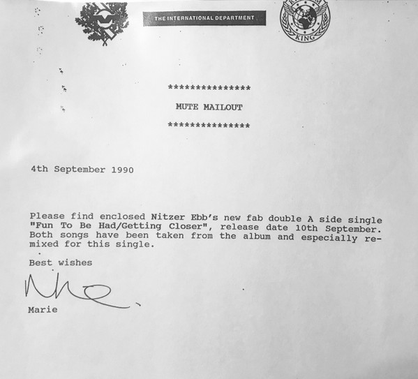 Nitzer Ebb - Fun To Be Had / Getting Closer (Mixes) ( UK / 1990 / NM- / Ex )