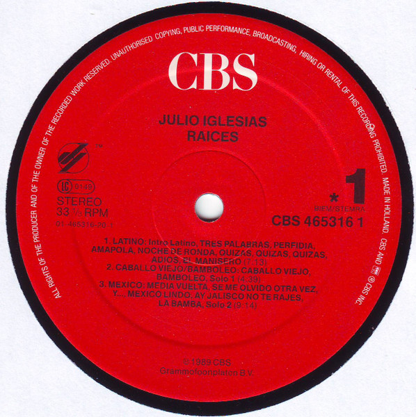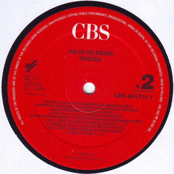 Julio Iglesias - Raices ( Europe / 1989 / VG+ / NM )