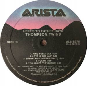 Thompson Twins - Here's To Future Days ( Canada / 1985 / Ex / NM- )