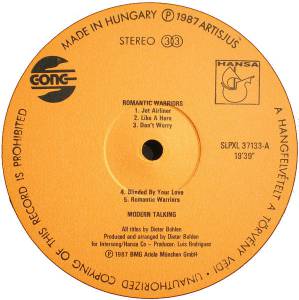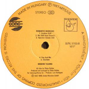 Modern Talking - Romantic Warriors - The 5th Album ( Hungary / 1987 / VG+ / VG+ )