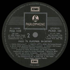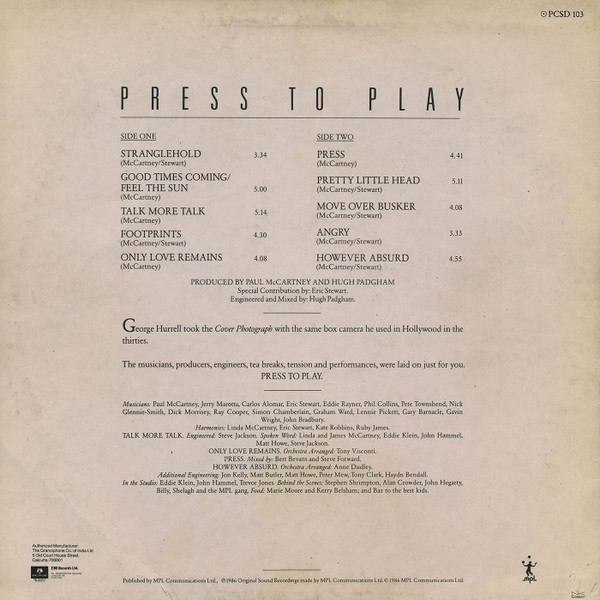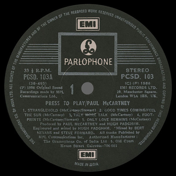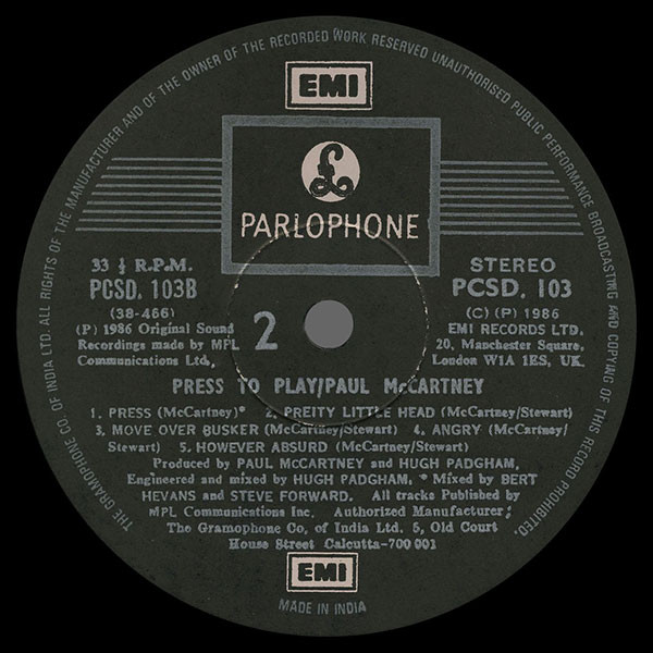 Paul McCartney - Press To Play ( India / 1986 / NM- / NM )