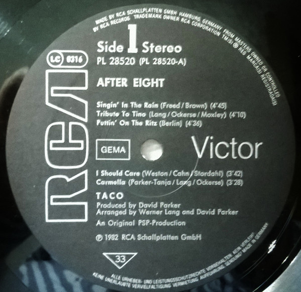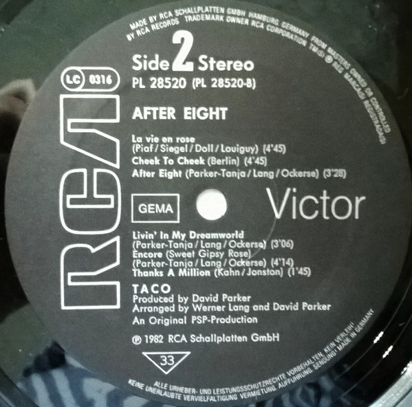 Купить винил Taco - After Eight в Москве с доставкой по России. Состояние конверта Excellent. Состояние пластинки Excellent. Виниловая пластинка по отличной цене производства Germany