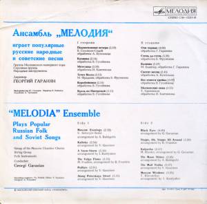 Мелодия - Plays Popular Russian Folk And Soviet Songs = Ансамбль "Мелодия" играет популярные русские народные и советские песни ( USSR / 1979 / NM / NM )