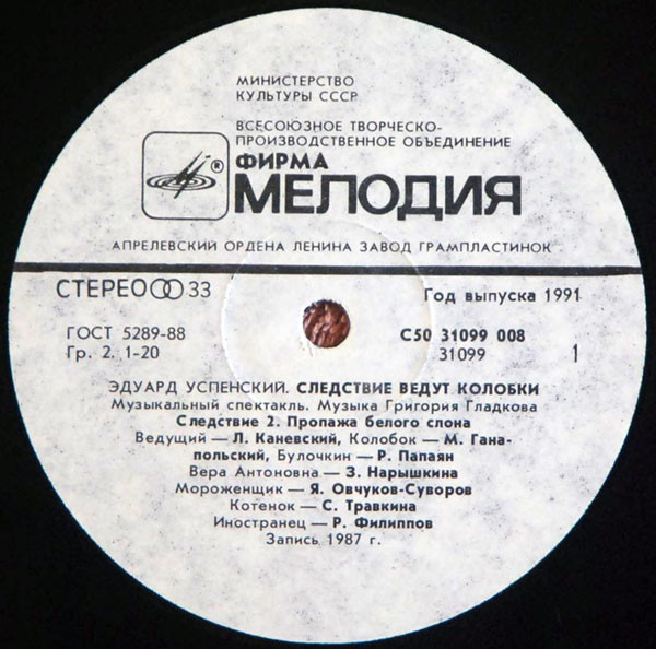 Эдуард Успенский - Следствие Ведут Колобки. Следствие 2: Пропажа Белого Слона ( USSR / 1991 / NM / NM- )