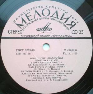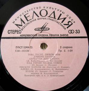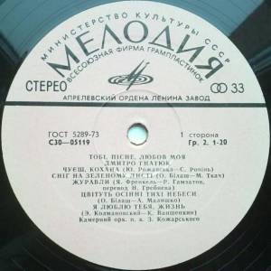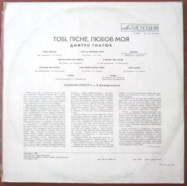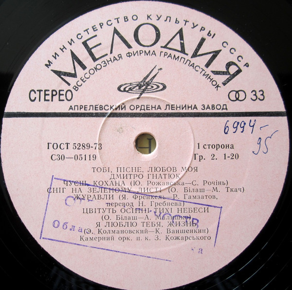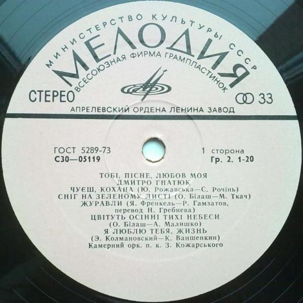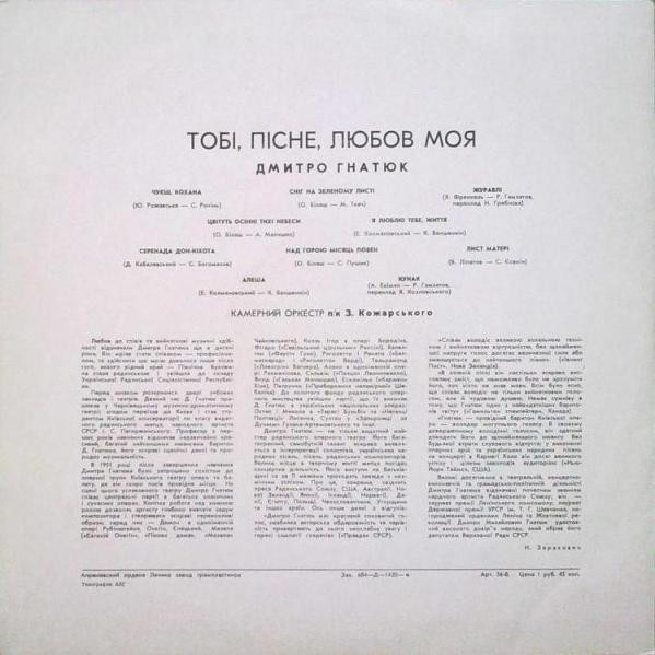 Дмитро Гнатюк - Тобi, Пiсне, Любов Моя ( USSR / 1974 / Ex / Ex )