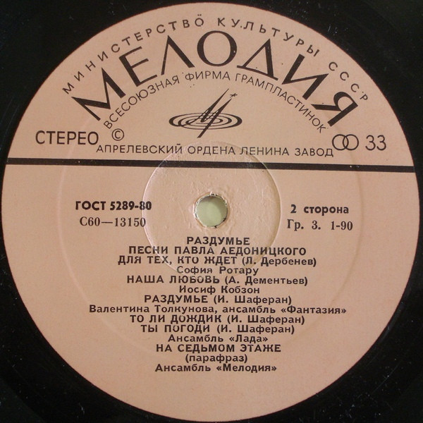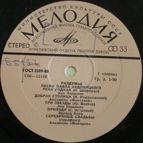 Павел Аедоницкий - Раздумье (Песни Павла Аедоницкого) виниловая пластинка купить в Москве. Конверт Ex. Пластинка Ex. Винил, Vinyl (LP)