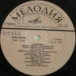 Павел Аедоницкий - Раздумье (Песни Павла Аедоницкого) ( USSR / - / Ex / Ex )