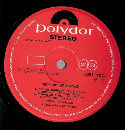 Stone The Crows - Ontinuous Performance виниловая пластинка купить в Москве. Конверт NM-. Пластинка Ex. Винил, Vinyl (LP)