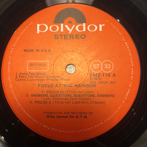 Focus - At The Rainbow ( US / 1973 / VG+ / VG+ )