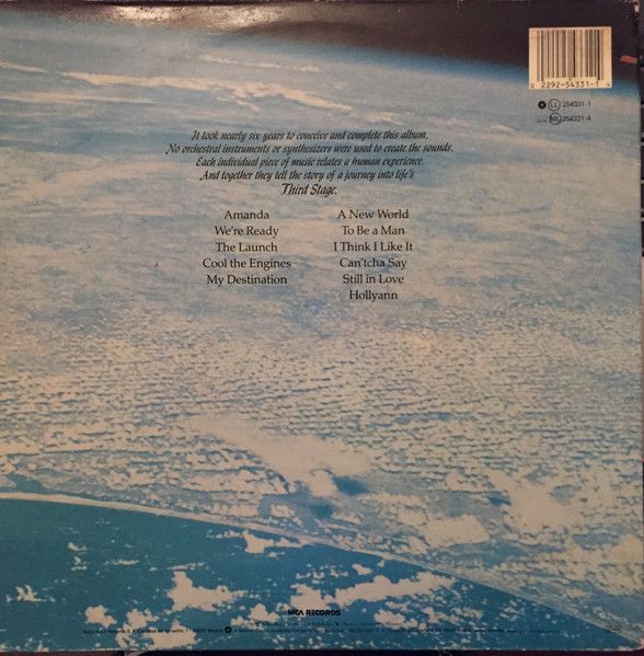 Виниловая пластинка Boston - Third Stage была выпущена в 1986 году. Треклист пластинки состоит из 10 композиций. Для ознакомительных целей на сайте присутствуют видео ролики с примерами композиций исполнителя. По предварительной оценке можно сказать, что Эта пластинка может считается оригиналом.Треклист