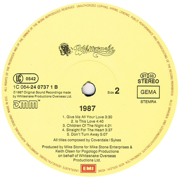 Whitesnake - 1987 ( Europe / 1987 / Ex / Ex )