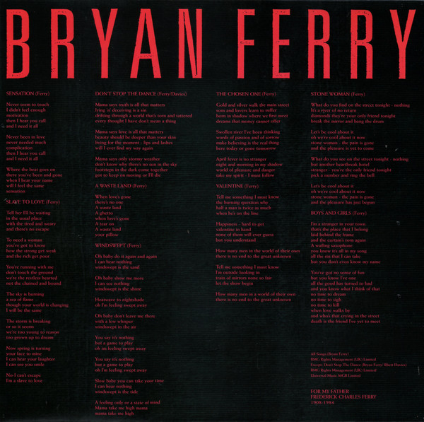 Bryan Ferry - Boys And Girls виниловая пластинка купить в Москве. Конверт S. Новая. Винил, Vinyl (LP)
