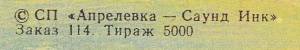 Треклист альбома из 2 пластинок насчитывает 6 композиций. По предварительной оценке можно сказать, что пластинка по состоянию как новая. Обложка винила практически новая. Данная музыкальная пластинка считается оригиналом.Треклист