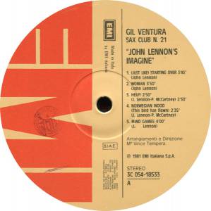 Gil Ventura - John Lennon's Imagine - Sax Club N. 21 ( Italy / 1981 / Ex / NM- )