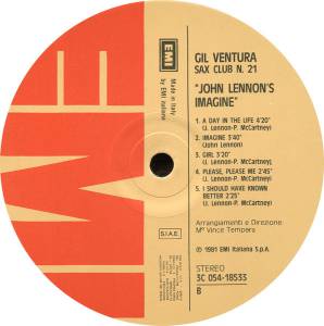 Gil Ventura - John Lennon's Imagine - Sax Club N. 21 виниловая пластинка купить в Москве. Конверт NM-. Пластинка Ex. Винил, Vinyl (LP)