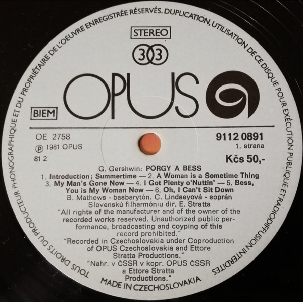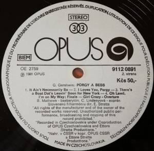 George Gershwin - Porgy And Bess - In Concert ( Czechoslovakia / 1981 / NM / NM- )