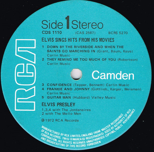 Elvis Presley - Elvis Sings Hits From His Movies ( UK / 1972 / VG+ / NM- )