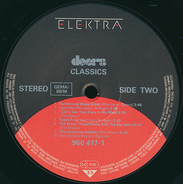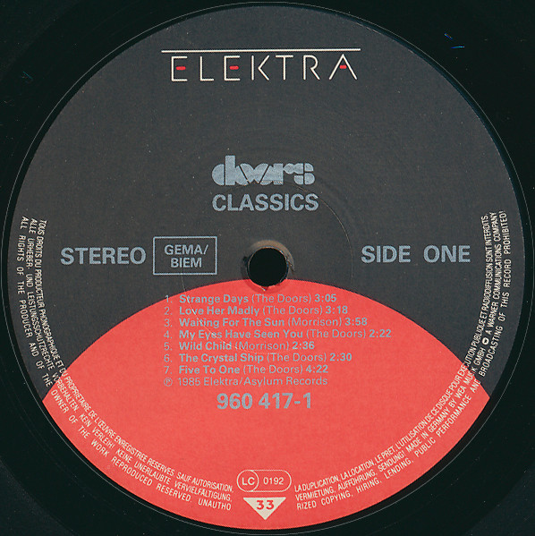 The Doors - Classics ( Europe / 1985 / NM- / NM- )
