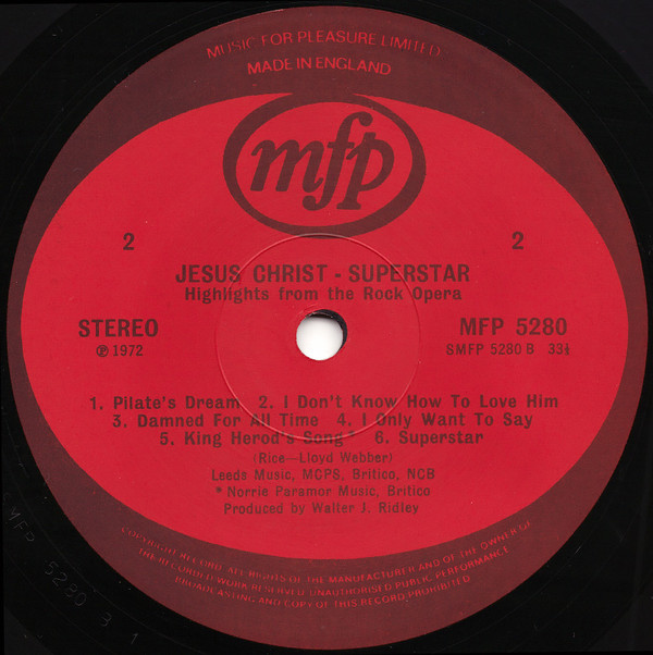 Виниловая пластинка Andrew Lloyd Webber And Tim Rice - Jesus Christ - Superstar Highlights From The Rock Opera была выпущена в 1972 году. Треклист пластинки состоит из 12 композиций.