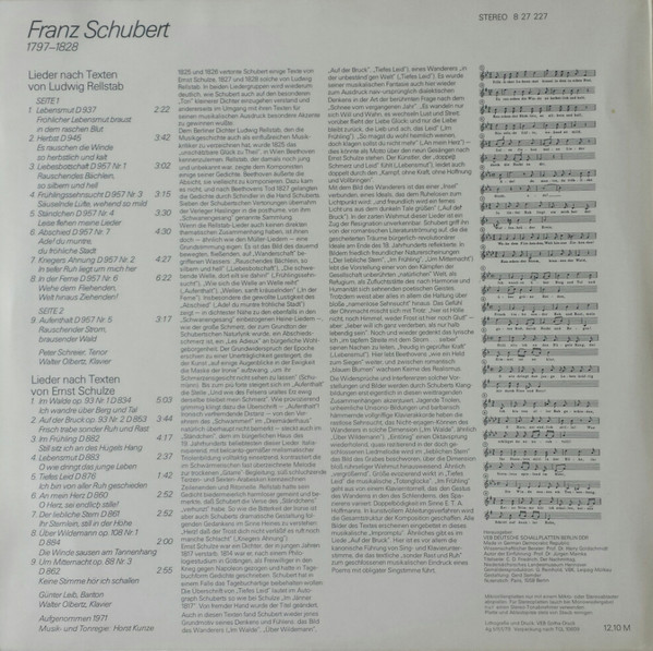 Franz Schubert - Lieder Nach Rellstab Und Ernst Schulze ( German Democratic Republic (GDR) / 1979 / Ex / Ex )